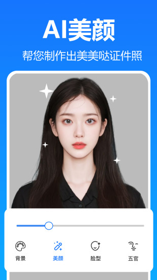 萬能AI證件照,不花一分錢,輕松免費制作證件照。 【海量規格,支持自定義】 提供一寸、二寸、大一寸、小二寸等常規證件照寸照尺寸,還包含證件尺寸、資格考試、語言考試、公務員考試、旅游簽證。同時支持自定義尺寸,設置想要的證件照大小或像素。 【智能摳圖,自動裁剪,一鍵換底】 根據選擇的規格智能裁剪圖片,自動精準提取人像,一鍵換底色,輕松簡單制作證件照。 【自然美顏,多功能調節人像】 優化人像識別算法,在保證證件照不失真的情況下,您可使用一鍵美顏功能,輕松制作精美的證件照。 【免費換尺寸和底色】 直接上傳已有的證件照,一鍵免費生成其他尺寸或底色的證件照。除了常用的紅白藍底色,還有漸變藍、商務灰、遠峰藍、黛藍等多種高級底色,還支持自定義選色,滿足您各種背景色需求。 【多種服裝免費換】 提供不同風格的男女服裝和可愛的童裝選擇,一鍵換裝,支持調節服裝的大小和位置,搭配消除筆調節細節,讓您無需跑相館或花大價錢買服裝,就能輕松擁有高級的證件照。 【免費多格式保存,提供多規格排版照】 支持多種格式和多種分辨率保存電子證件照,更可免費生成多種規格的排版照。