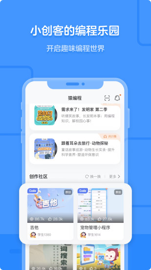猿編程APP是一款專為青少年設計的少兒編程教育產品。猿編程成立于2017年的世界程序員日(10月24日),是專業的少兒編程教育品牌,專注于培養人工智能時代下,掌握編程語言、計算思維、創造能力、未來視野的科技少年。 1. 課堂內容全面:課程內容的設計理念上將計算思維全面應用到了編程知識學習的各個環節,更關注編程知識在不同領域的應用。 2.學習模式多元:課程采用真人直播+AI互動的學習模式,配備多彩的課后拓展活動。充分考慮了不同孩子之間學習情況和習慣差異。 3. 賽考活動豐富:組建多元化的賽考體系、讓孩子們的學習成果“看得見”。包括中國電子學會組織的Python語言水平測試、中國自動化學會組織的人工智能核心素養測評(AICE)、藍橋杯等。 4.系統平臺強大:日常學習使用的IDE平臺,通過新算法的幫助在代碼運行速度上實現了重大提升。 5.師資過硬:明星教研團隊,數萬節直播課經驗沉淀,嚴選優質師資。 6.秀出成果:自由發揮創作,還可通過學習報告、作品分享,讓孩子之間方便的交流。