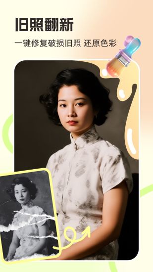 老照片畫質修復是一款針對老舊照片上的折痕、不清晰、劃痕等地方進行人工修復恢復照片,同時提供黑白照片智能上色的功能,變老相機的趣味功能,手機照片的查找的功能,是主打照片的一款應用。 【照片修復】圖像去霧、對比增強、清晰增強、色彩增強,讓你的老舊照片還原清晰度,專業(yè)的人工在線進行照片修復恢復,修復老照片的同時,也保存你的美好回憶。 【孩童的你】一張照片,還原小時候的童真模樣,,通過分析人臉特征,精準的判斷臉部肌肉走向,一鍵還原孩童的你。 【漫畫臉】智能生成相似度極高的卡通圖像,包含多種卡通特效,任意選擇,可夸張、可寫實,美麗的卡通特效頭像你值得擁有。 【證件照】AI智能生成證件照,可選擇一寸、二寸、身份證尺寸等,足不出戶拍出想要的美麗電子證件照。